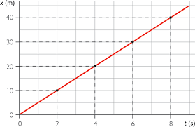 La gráfica posición-tiempo (x-t) de un movimiento rectilíneo uniforme (m.r.u.). representa en el eje horizontal (eje x) el tiempo y en el eje vertical la posición. Observa como la posición (normalmente la coordenada x) aumenta (o disminuye) de manera uniforme con el paso del tiempo. Podemos distinguir dos casos, cuando la velocidad es positiva o negativa:
